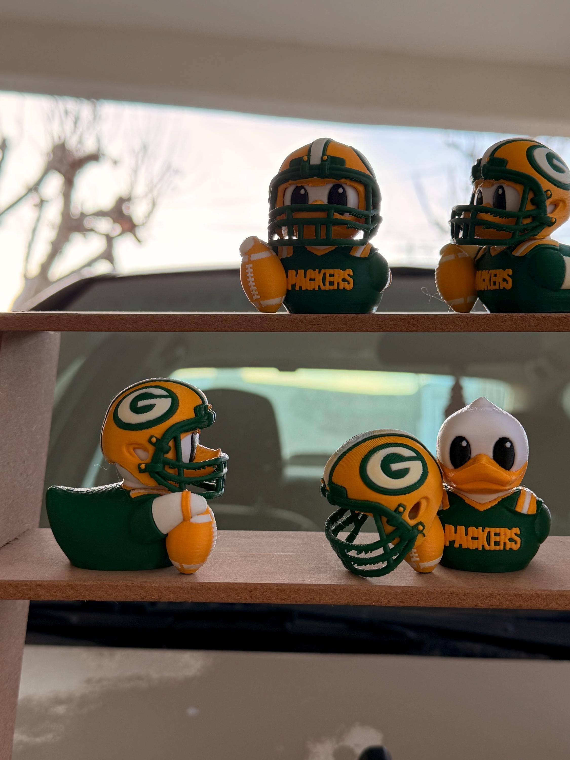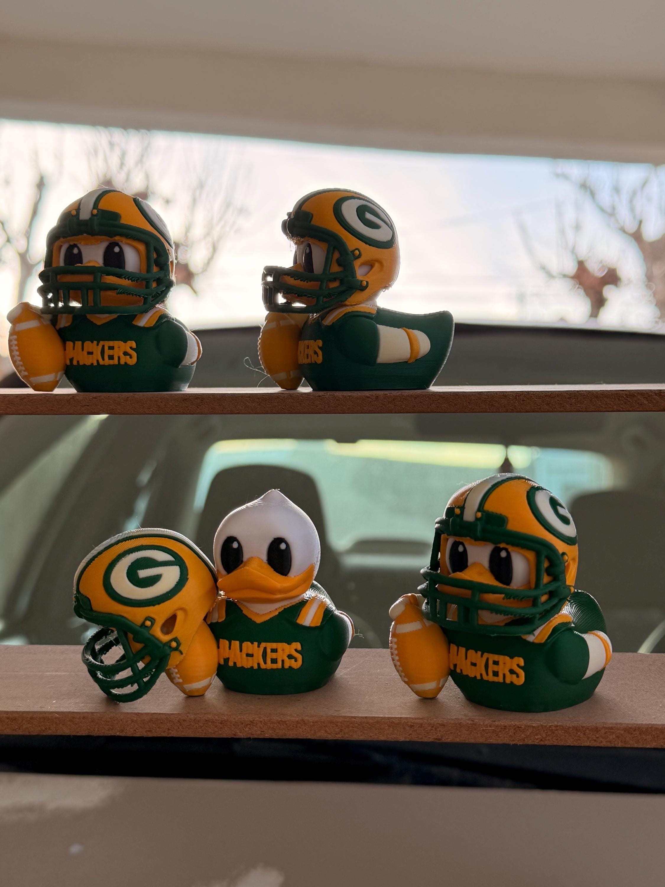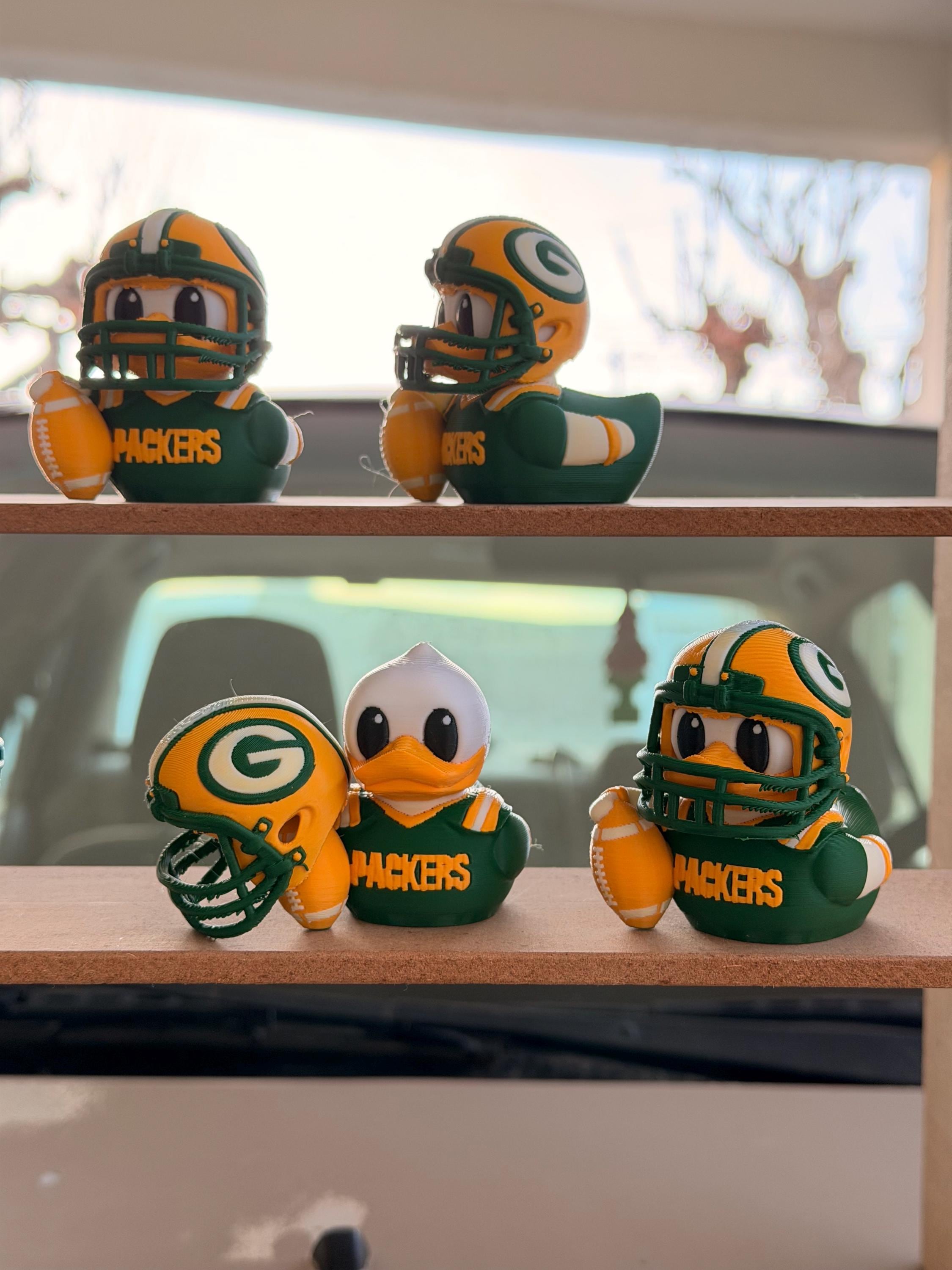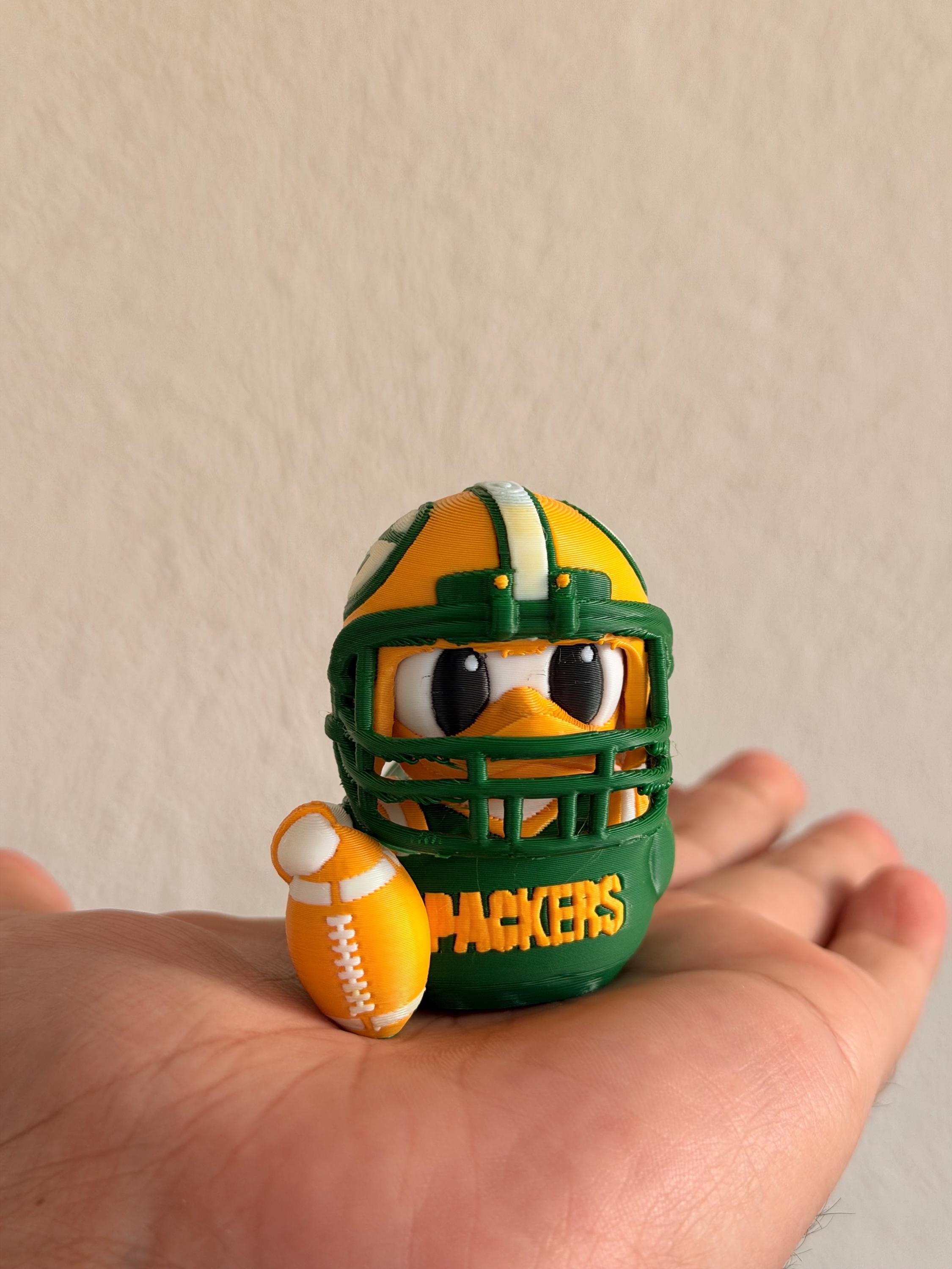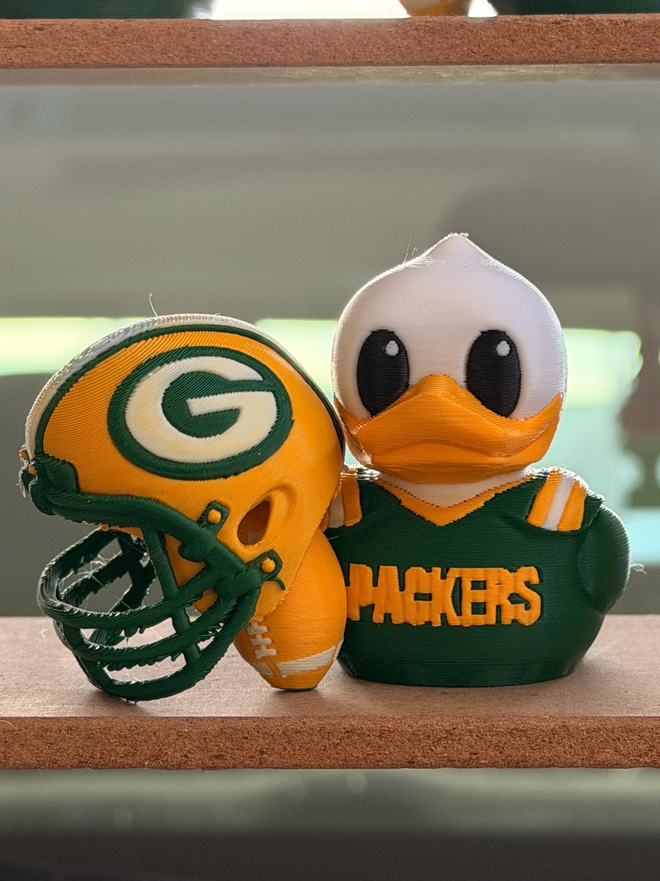 Green Bay Football Duck with Helmet – 3D Printed Sports Fan Duck, Car Dashboard Decor, Football Lover Gift, Fan Inspired Collectible